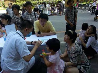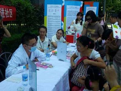 此次义诊活动,拥有着丰富临床经验的内科崔克西大夫以及口腔科专家张敬东大夫,不畏炎热,在社区现场为大家提供专业的咨询,吸引了小区内的众多儿童家长携带宝宝们热情参与。“医生,孩子最近一直略有轻微的咳嗽,您给看一下吧”,一位母亲焦急的问道。崔大夫立即为孩子测量了体温、检查了舌苔,告知她:“您的孩子是扁桃体发炎了,而且时间已经很长了,可能还会出现说话沙哑的症状,建议您带孩子到医院详细地检查一下。”同时,崔大夫还告知家长一些注意的事项。医生认真负责的态度,专业细致的解释,得到了现场许多家长的充分肯定:“这种咨询活动真好,很方便,希望以后能够经常搞这样的活动!” 为了活跃当天的现场气氛,给小朋友们带去欢乐,也为了消除孩子们对医生的恐惧感,我们还特别邀请到金宝贝早教、杰斯教育和功夫宝贝三家儿童机构,为大家带来了精彩的节目表演,让现场的小朋友和家长在咨询的同时,感受到更多的快乐。 此次义诊活动取得了圆满成功,进一步拉近了医院与百姓的距离,让社区居民群众真切感受到我们嫣然的爱心。义诊活动的负责人李芳也表示今后在社区将更多地开展义诊、健康知识讲座等活动,从而提高居民对儿童健康知识的普及。