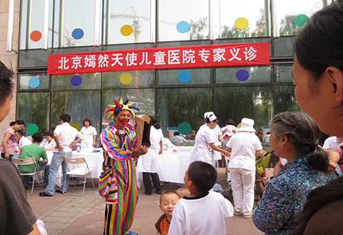 2012年9月22日上午8:30~11:30,北京嫣然天使儿童医院在院前广场举行了医院开业以来的首次义诊活动,义诊科室由内科、外科、耳鼻喉科、口腔科、眼科、保健科组成,专家阵容强大,业务院长也亲自坐镇指挥。此次活动吸引了来自医院周边各小区、学校的家长和孩子们前来咨询、就诊。