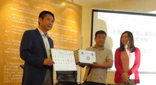 签约现场,李斌院长、嫣然天使基金执行总裁李诗女士为首批到院检查的学生赠送就诊卡和药箱。