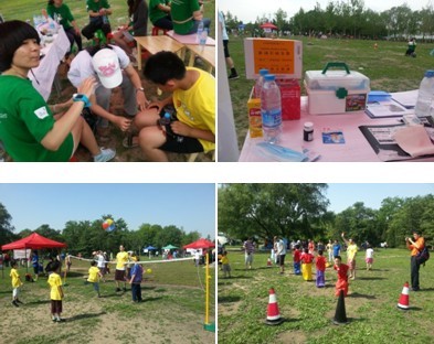 此次幼儿运动会共吸引了200多名儿童及家属到场参与。蔚蓝的天空,绿色的草坪和可爱的小朋友们在嫣然和博识充满爱的呵护下交织成一道美丽的风景线。宝宝们穿着整齐的运动T恤,张开自己的小翅膀,在场地中央与外教老师做着各种互动游戏。他们勇敢坚强,团结友爱,稚气的声音中透露着掩藏不住的兴奋和自信,唤起了所有到场的家长们对童年的美好追忆……