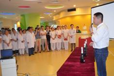 执行院长杨弘仁先生感谢了嫣然天使基金7年来的努力和支持,感谢全院员工一年来的付出和贡献,使一个美丽的小女孩的故事和一个父亲的承诺成为了现实,给唇腭裂患儿带来了希望和福音,同时勉励全体员工成为“仁爱、济世、关怀、奉献”的使者,把爱传出去。