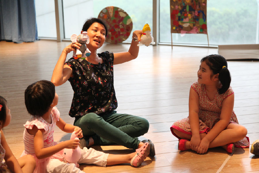 活动开始前,专业的舞蹈老师在为小朋友们展示示范