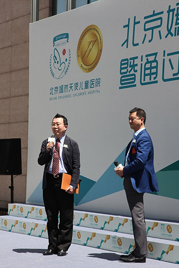 朝阳区卫生局副局长杨桦先生在发言中,肯定了北京嫣然天使儿童医院对于朝阳区儿童医疗资源的补充与贡献,并寄语获得JCI评鉴之后的医院发展更好。医院董事之一的杨弘仁先生在庆典中与到场嘉宾分享了医院在参评JCI过程中的点滴,并向在场来宾做了建院两年以来的简要工作汇报。JCI考核将通过对医疗环境安全、医疗服务质量改进、药品管理和使用、感染预防和控制、员工资格和教育等事无巨细的考量,通过1033项考核标准来判定参评医院是否具备荣获这一国际医疗标准认证殊荣。目前,全世界共有52个国家的440所医院通过该认证。在成为JCI认证医院后,嫣然医院毫无疑问用事实证明了自身的实力,同时也将更好的以优质服务回馈社会。北京嫣然天使儿童医院自2012年7月正式开业接诊至2014年5月,门诊服务人数从0增长到61000人次,并作为嫣然天使基金的合作医院完成了1200余例救助手术,在履行好社会责任之余更有效的充实了区域儿童医疗资源。