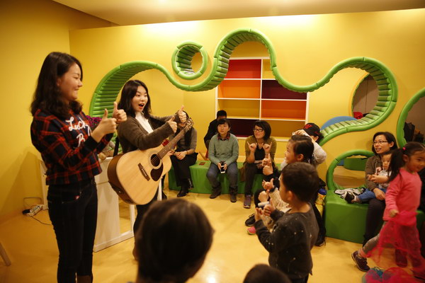另一位志愿者陈思羽为大家独唱《乘着歌声的翅膀》,并还跟现场的大小朋友们一起“首度同台合作”唱了一首《哆来咪》。
