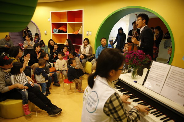 你一点都没看错,医院里也有音乐会!在嫣然天使儿童医院二层色彩斑斓的儿童活动中心里,钢琴弹起来了,小提琴也拉起来了,参加活动的20位家庭的小朋友们和大朋友们一起拍手唱歌跳起来了! 我们的医院一下子热闹起来啦~