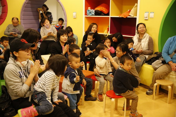 音乐欣赏完毕以后,当然要来亲自感受一下音乐的力量呀!来自妈咪爱的两位音乐治疗师崔允晶、赵越笛带着现场的大小朋友做起了音乐游戏。小朋友们跟着音乐想象自己在一片大森林里,对抗女巫师!