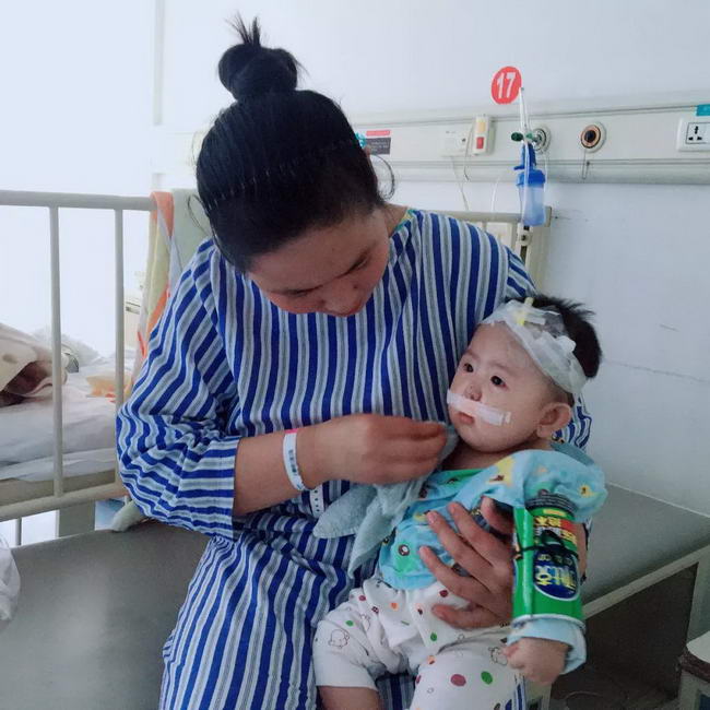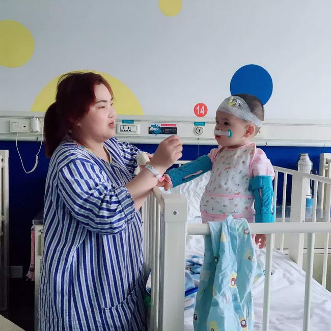 这两个宝宝刚做过手术,妈妈们悉心照料着。