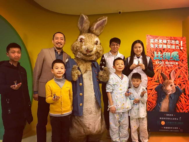 Peter Rabbit from the movie is the classic British cartoon character. Peter Rabbit is going to play on the Lantern Festival. Before the movie screenings, the heart-warming angel in a blue coat came to Beijing Smile Angel Children’s Hospital to visit children with cleft lip and palate.