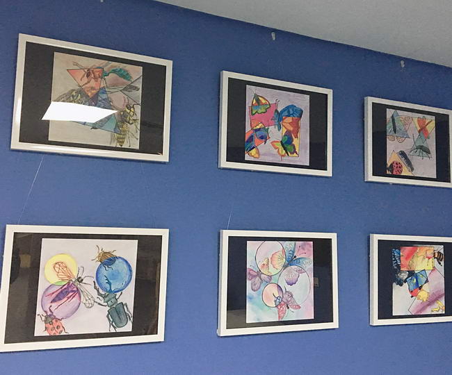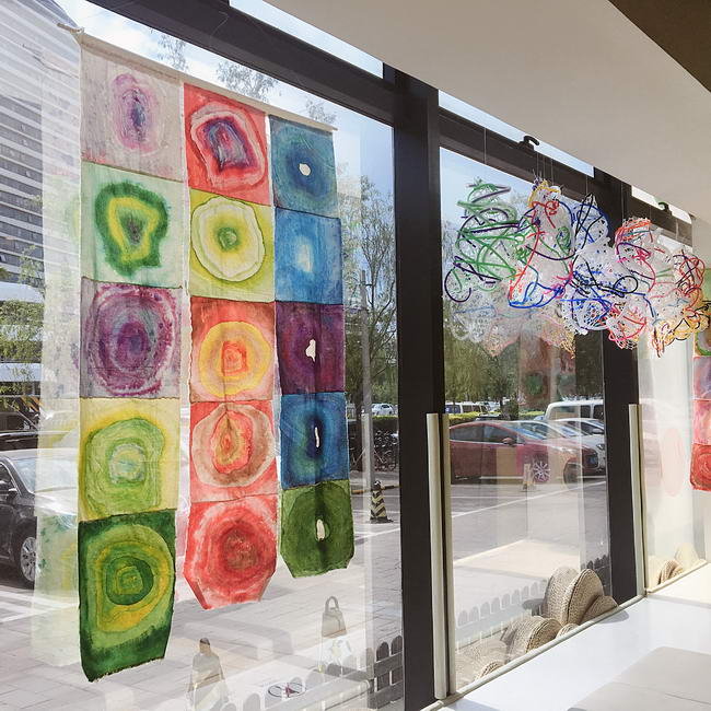 图3:陈列于医院唇腭裂病房的作品,这些作品来自德威幼儿园、小学和中学三个学部的学生以各种各样的方式展现了大自然的色彩、形状与线条。将这些户外元素带入本次设计的意义在于给病房的小朋友们带来一个自然花园,希望生病期间的孩子们同样可以感受自然的生机与快乐。部分作品还以捐赠的方式摆放在诊室和公共区域。