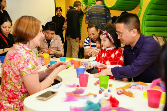 当天,德威学校的老师们也带领嫣然社区的孩子们一起体验了展览作品的创作过程。